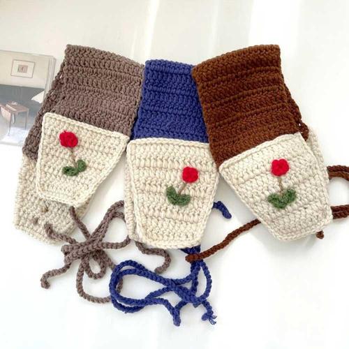 플라워 자수 니트 귀마개 귀 보온 보호 손뜨게 패션템 귀귀도리 귀도리마개 커플귀도리