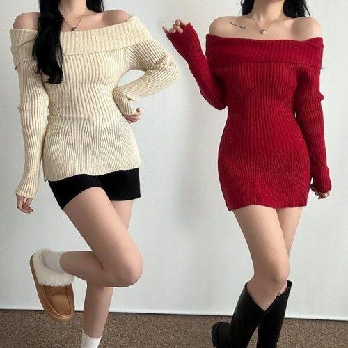 [모노무드]LMO 뜨개탑 풀슬리브 하이라이트 시그니처 오픈숄더롱기장 심플패턴