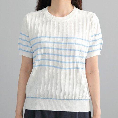 [모노무드]LMO S/S 스타일 뜨개탑 줄무늬하프티 립 상의