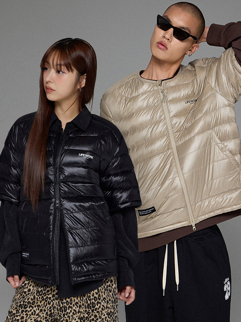 [라이프워크] Lite 커브드 퀼팅 반팔 후드 다운 점퍼_LW254DJ703