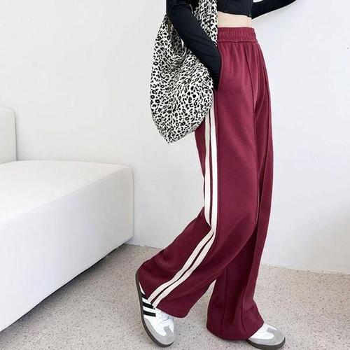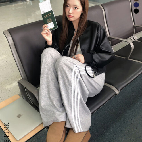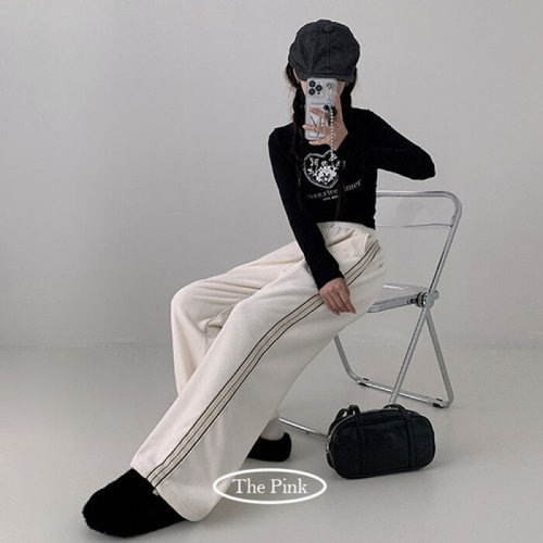 더핑크 / 디쥬 밴딩 기모 벨루아 배색 라인 와이드 트랙 팬츠