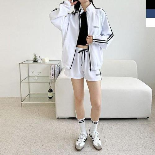 스포티 라인 져지 트레이닝 트랙 집업 숏 점퍼 [Y2K 세미 크롭 탑 하이넥 여자 여성 아우터]