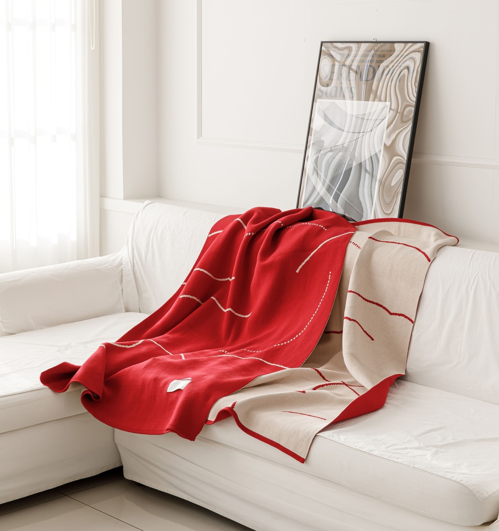 레드 라인 패턴 양면 담요 니트블랭킷 2colors