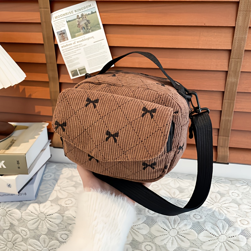 TEMU 여성용 경량 코듀로이 숄더백 - 스타일리시 브라운 블랙 스타, 캐주얼 외출 및 출퇴근용 재사용 가능한 크로스바디, 캐주얼 데이팩 | 별 무늬 가방 | 지퍼 클로저 가방, 소형 크로스바디 백