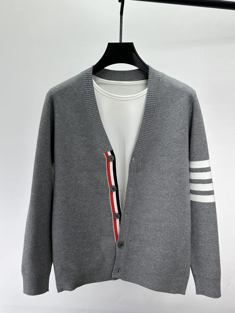 디자이너 퀄리티 남성용 브이넥 니트 가디건 가을 겨울 신상 솔리드 컬러 더블 포켓 스웨터 코트 캐주얼 출퇴근 남성복 상의