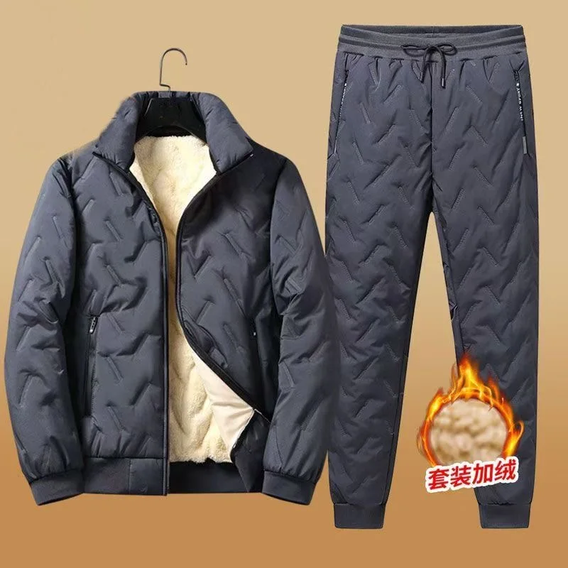 패셔너블한 두꺼운 아빠 스타일 면 재킷 남성용 겨울 다운 코튼 코트 양털 벨벳 따뜻한 방한 코튼 코트 및 바지 세트