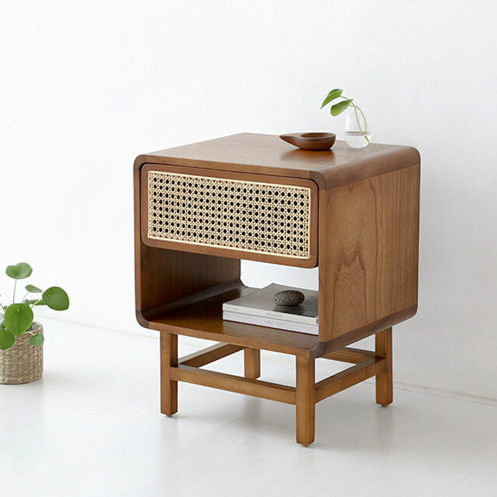 우드 라탄 수납장 현관 거실장 소파 사이드 테이블 멀티 협탁600