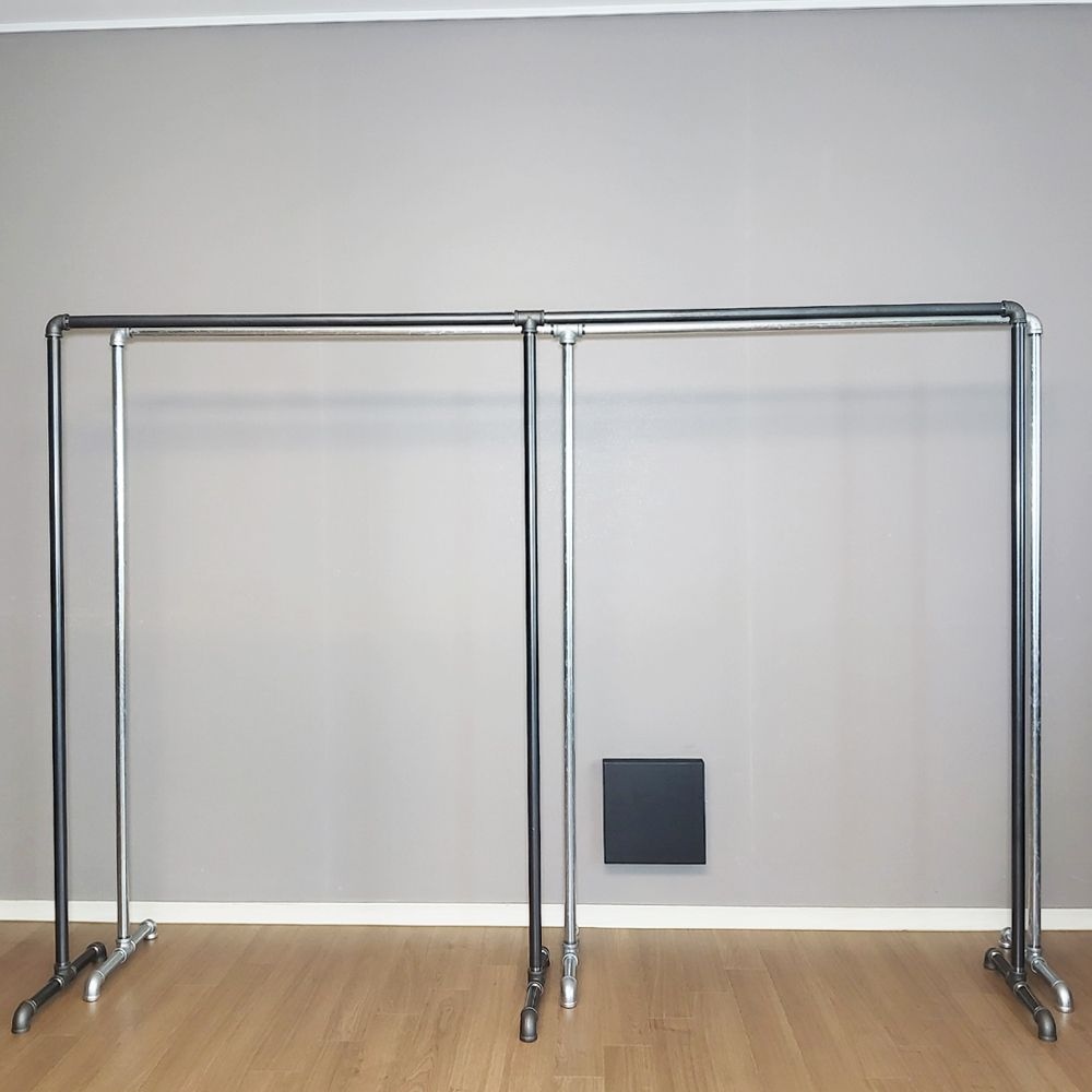 아다만트 와이드 빈티지 블랙 실버 파이프 드레스룸 이동식 옷 벽선반