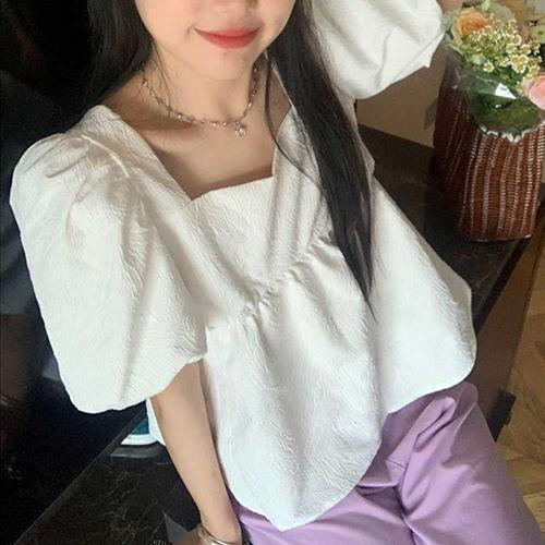 주말 여름 나들이 여름 화이트 블라우스 퍼프 반팔 WFKOCI0