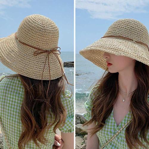 바캉스 모자 라피아햇 리본 휴양지 해변가 자외선차단 WFFVZJK