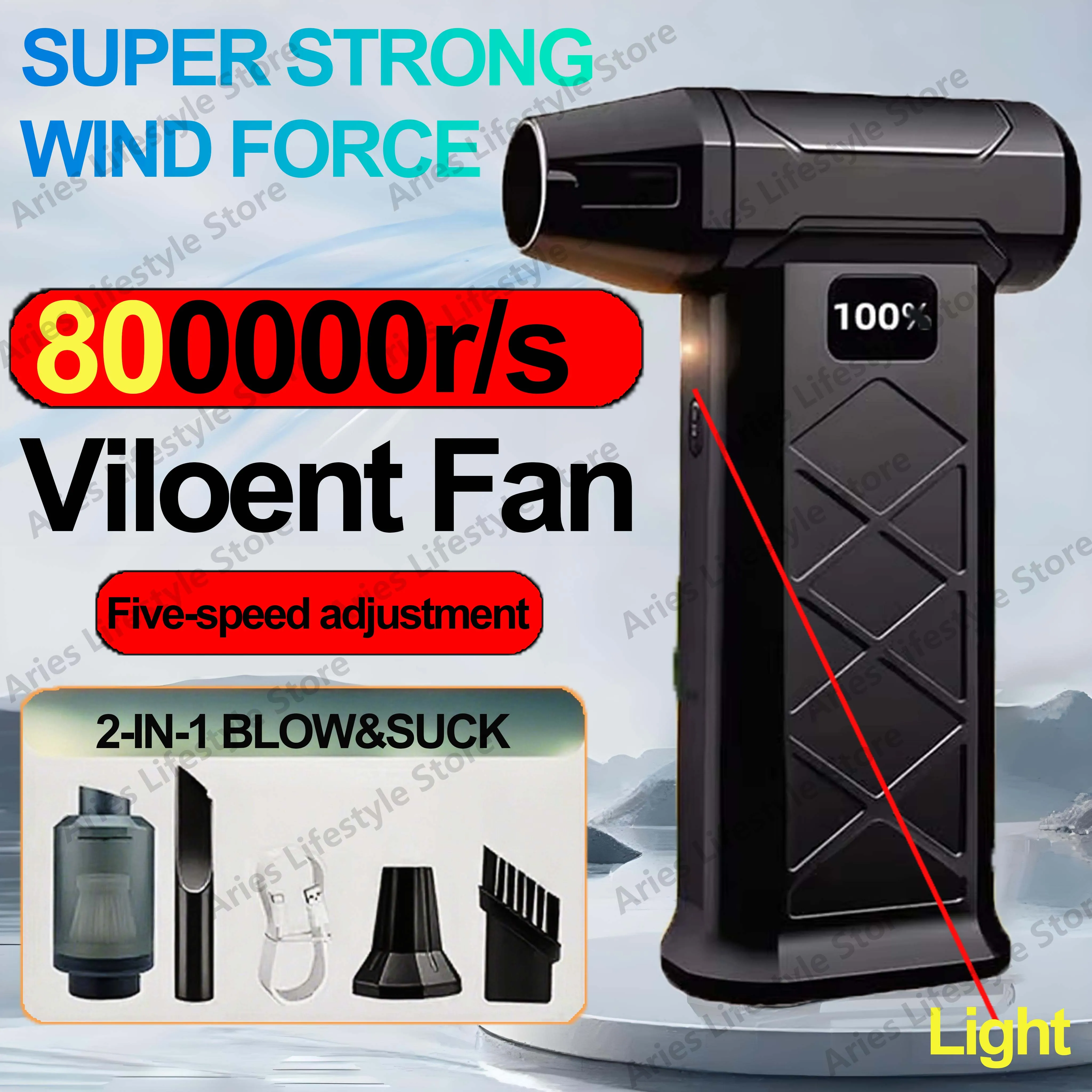 새로운 2-in-1 강력 800000RPM 폭풍 팬 5단 속도 에어 블로워 브러시리스 모터 야외 휴대용 블로워 충전식 먼지 제거 도구 2025
