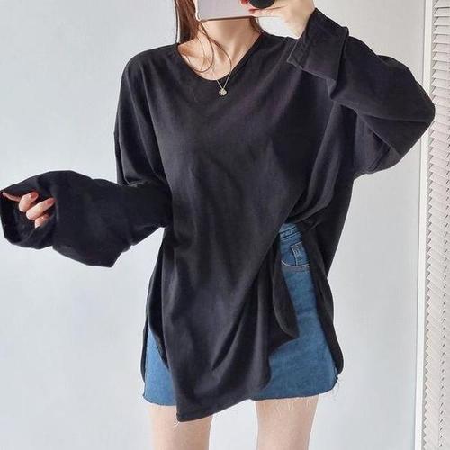 아이우먼 옆트임랍빠라운드긴팔티 NSP863M508 빅사이즈