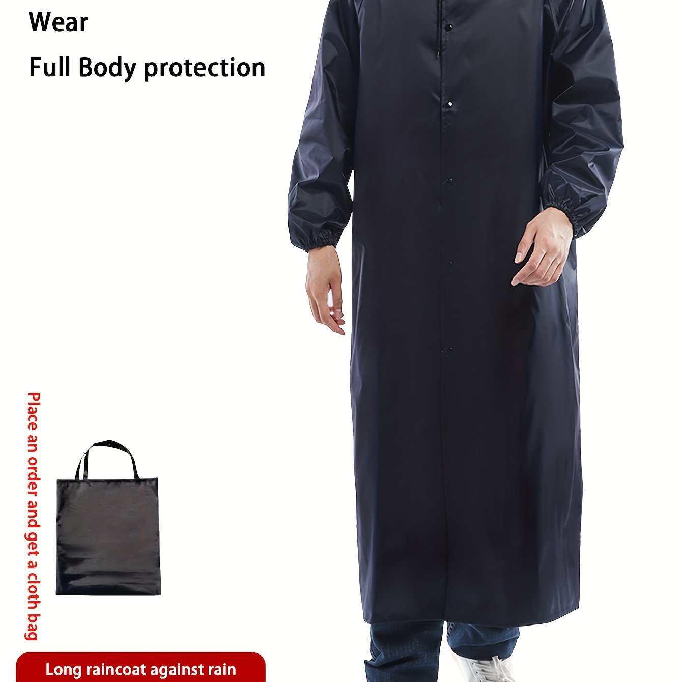 TEMU 편안한 핏, 남성용 캐주얼 네이비 블루 후드 루즈핏 롱 트렌치 코트, 폴리에스터, 버튼 디테일, 사계절 착용 가능