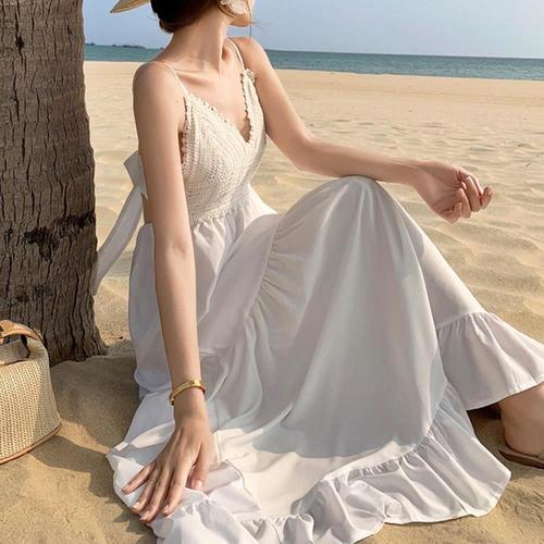 [셀럽하우스]러블리한 MBKP1894 해변룩 바캉스 니트 롱원피스 30대데일리룩