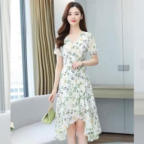 [엄지척]랩스커트 여성 플라워 쉬폰 셔링 브이넥 롱 원피스_19909873_667501