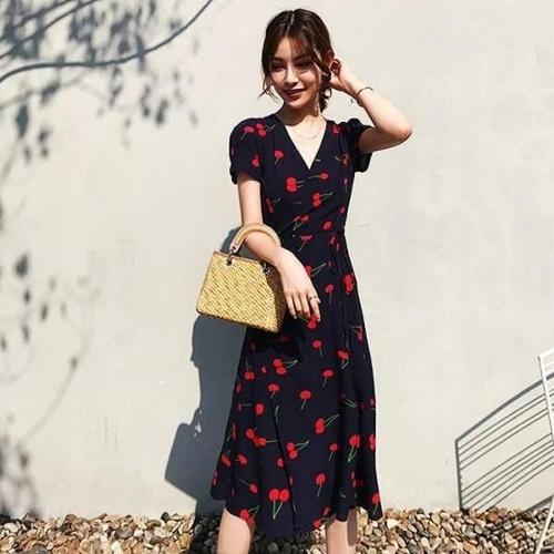 [엄지척]여성 체리패턴 롱원피스 허리끈 랩스커트 여름 원피스_19870109_667501