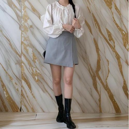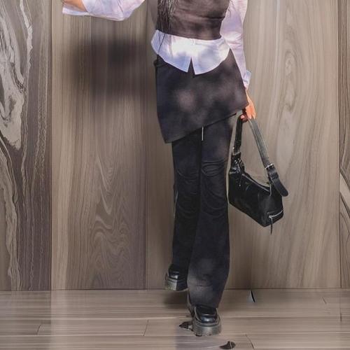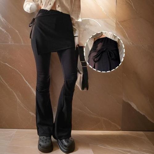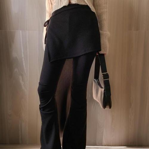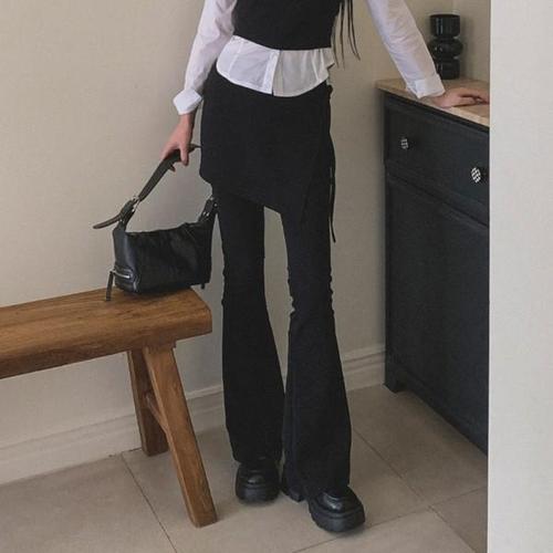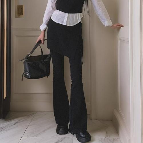 [옷자락]여성 레이어드 부츠컷 랩스커트 셔링 치마바지