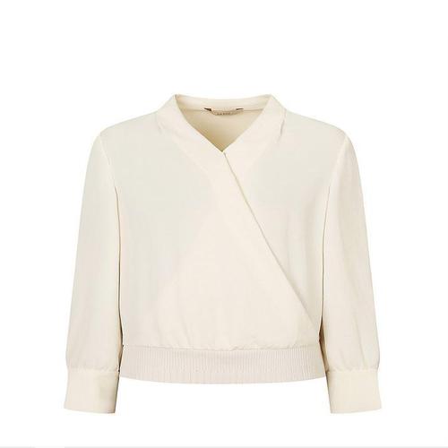 [미라클세븐]여성 크롭 랩 블라우스 벌룬 소매 포인트 디자인
