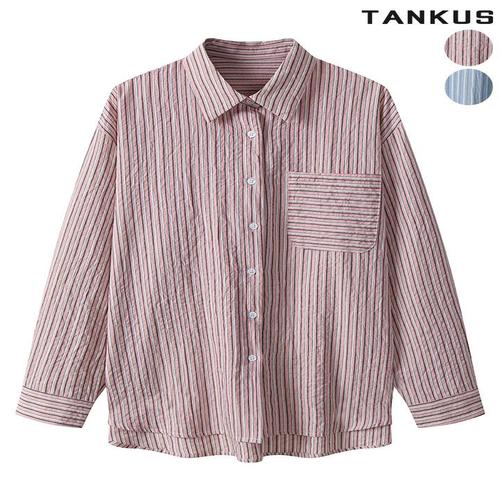 [탱커스]여성 스트라이프 랩 스타일 셔츠