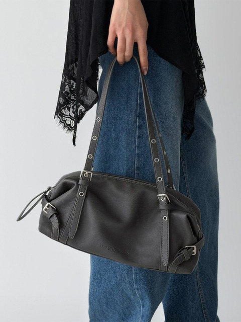 [더그린랩] 벨티드 디테일 미니 바게트 백_블랙, 브라운, 화이트