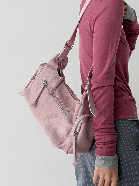 [더그린랩] 스웨이드 카고 디테일 크로스 숄더백_블랙, 핑크