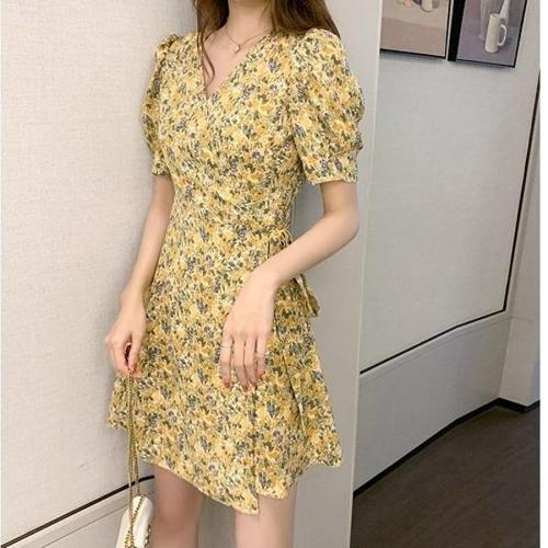 [신상오픈런]|CCO4954|지파이 틀라워 A라인 여성 썸머 원피스 랩 퍼프소매_18154238_597559