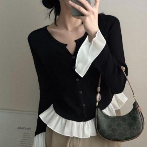[옷자락] 여성 러블리 레이어드 긴팔 니트 블라우스 트임