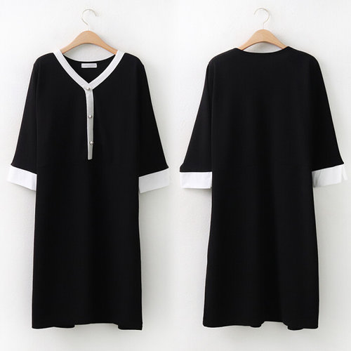 나야홍 / 빅사이즈배색원피스 9220L503 화이트럭셔리원피스 BS