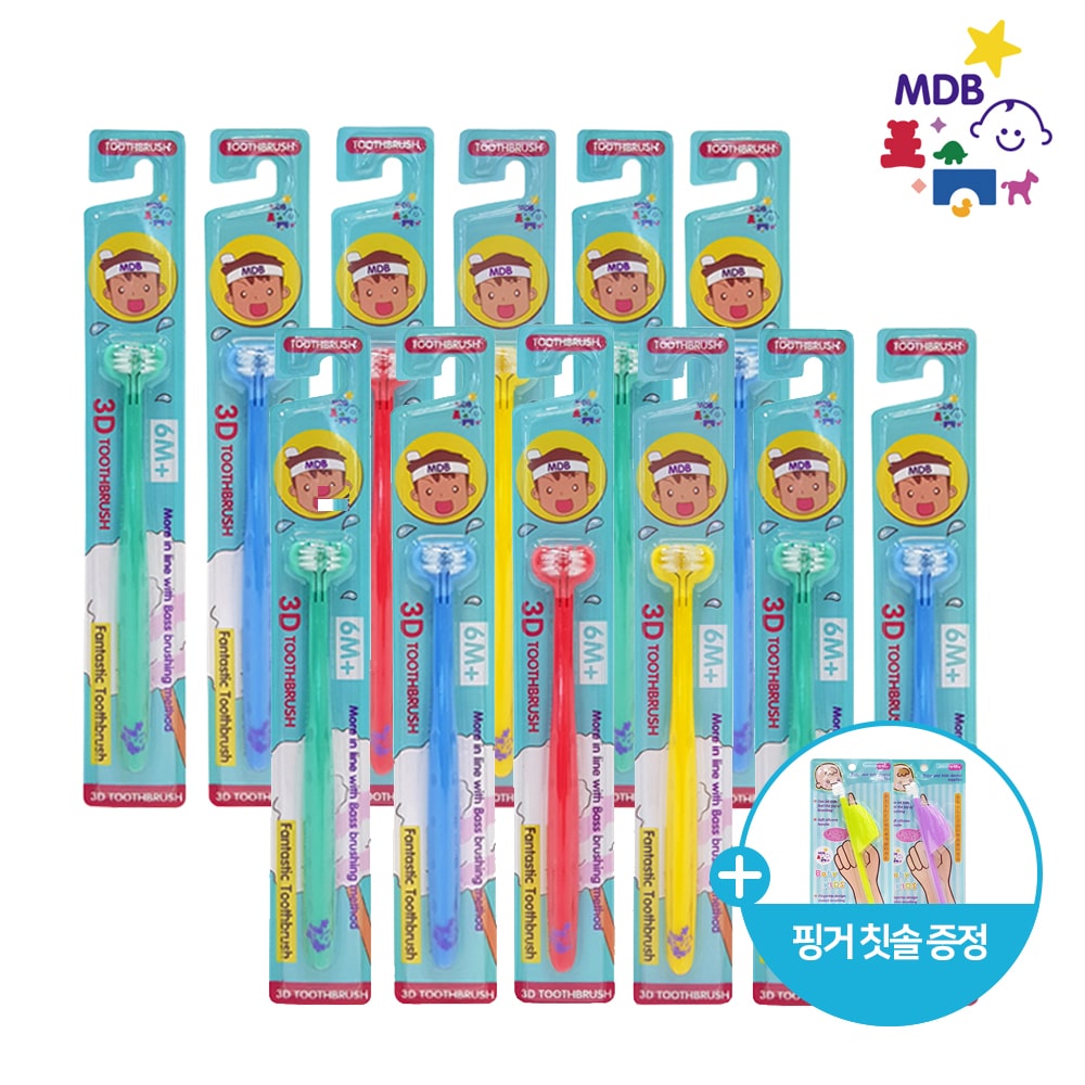 3D 어린이칫솔 혀클리너 겸용 아기 유아 칫솔 10개 + 핑거 칫솔 2개