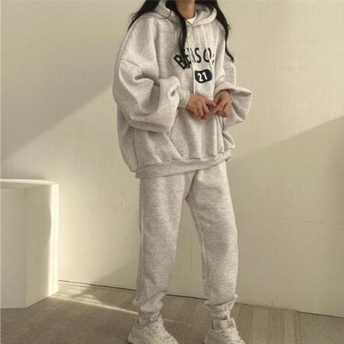 지프 남녀공용 캐주얼 여유로운 오버핏 후드 맨투맨 상하의 세트