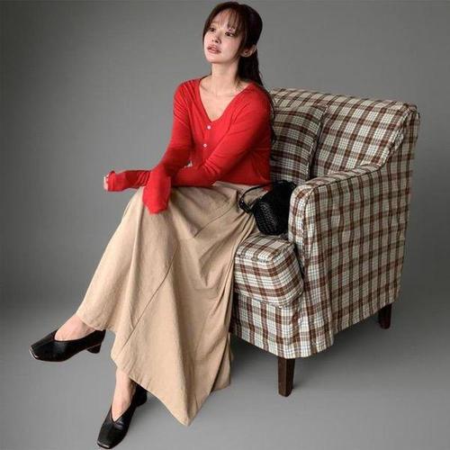 [신상오픈런]여성 심플한 면혼합 라이오셀 벨트 A라인 긴 스커트