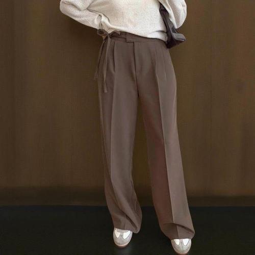 [신상오픈런]여성 클래식 핀턱 허리띠 일자형 와이드 팬츠