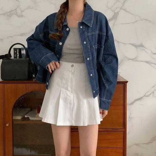 [신상오픈런]|CDJ6D63|여성 캐주얼 워싱 오버사이즈 크롭 데님 재킷
