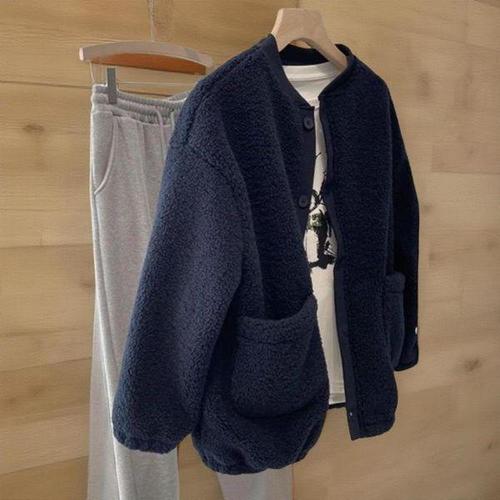 [신상오픈런]여성 오버사이즈 따뜻한 뽀글이 라운드넥 기본 자켓