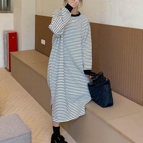 [셀럽하우스]줄무늬 IQXW6268 롱원피스 기모 스트라이프 여성 레깅스코디