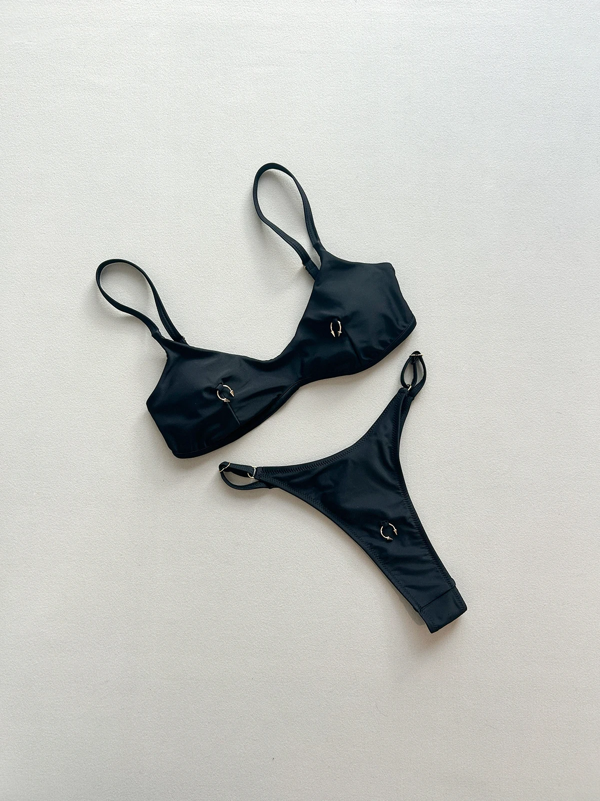 섹시한 블랙 링 비키니 원피스, 크로스 할로우 하이웨이스트 수영복, 비키니 백 타이 수영복, 여성 비치 모노키니 비치웨어