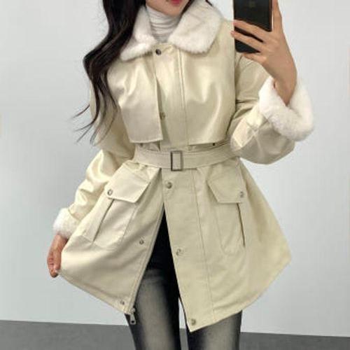 [이버유]여자 벨트 가죽 무스탕 여성 겨울자켓