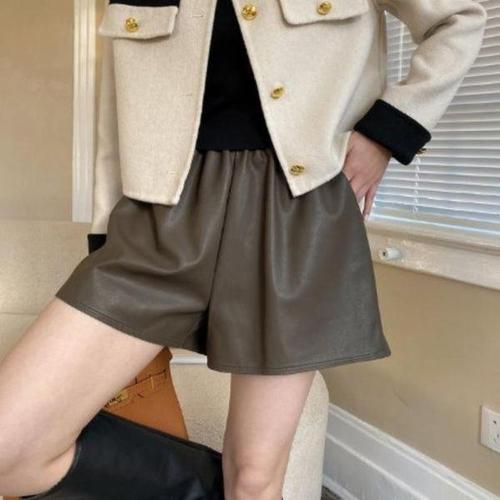 [옷자락] 여성 가죽 하이웨스트 밴딩 숏 팬츠