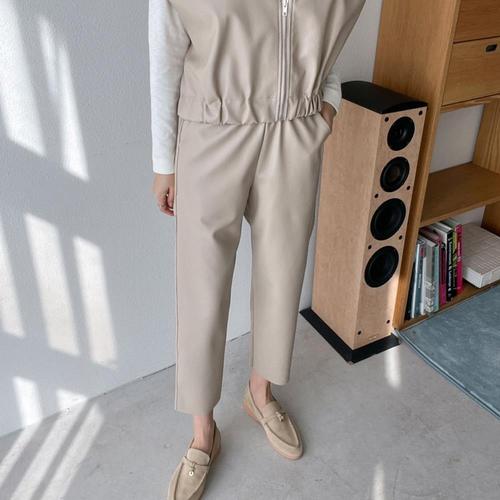 [옷자락]여성 가을 레자 고무줄바지 비건레더 일자 배기 팬츠_4