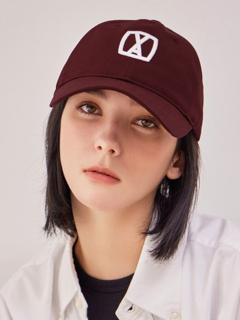 [바잘] VA 스퀘어 피그먼트 라벨 볼캡 레드빈