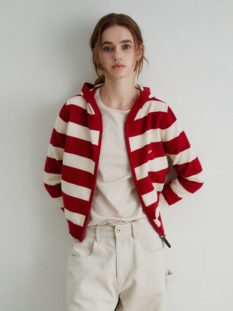 [하네] 스트라이프 울 후드집업 니트_Red Stripe