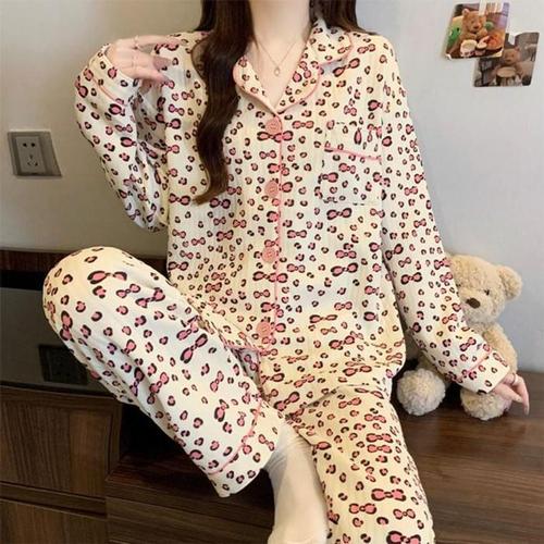 [라일리여성의류] Rly 여성 사계절 핑크 레오파드 호피 잠옷 파자마 세