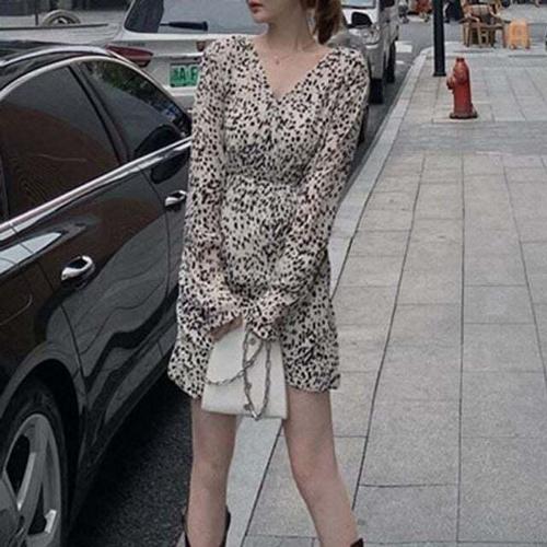 [셀럽하우스]여성 RSYQ0350 레오파드 패턴 원피스 브이넥 랩디자인 치마