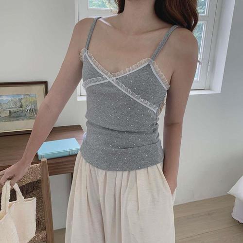 [다잇템]여성 어깨끈 귀여운 레이스 땡땡이 나시탑
