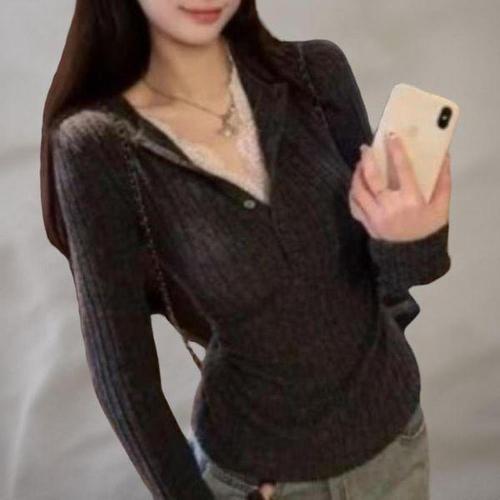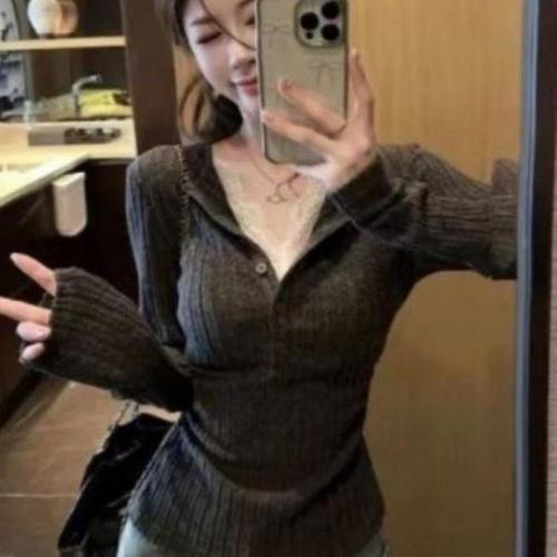 [신상오픈런]여성 브이넥 긴팔 레이스 레이어드 티셔츠