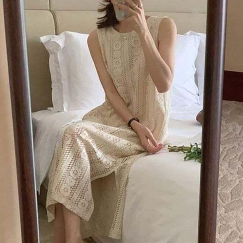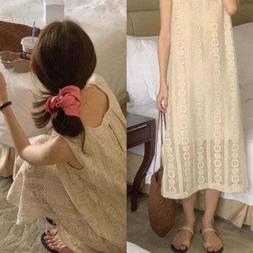 여성 펀칭 레이스 나시 롱원피스 아이보리 1P 커버업 펀칭원피스