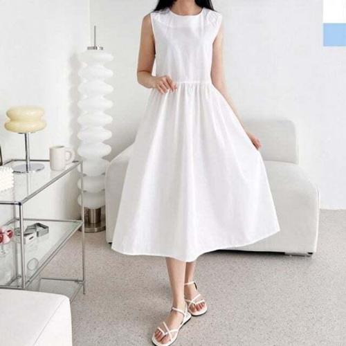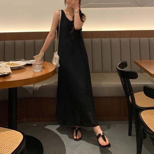 [셀럽하우스]허리 DLIT8204 베이직 메리 밑 레이스 올데이 나시 롱 원피스