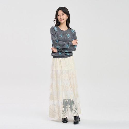 [에고에딧]플라워 레이스 롱 스커트