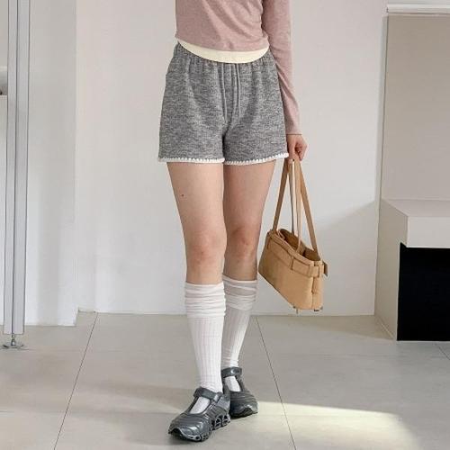 옷자락 / 여자 루즈핏 밑단 레이스 니트 밴딩 반바지