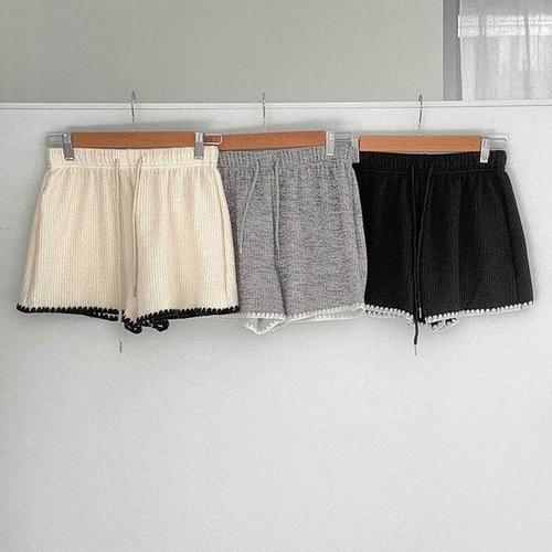 [셀러허브_여성트랜드패션]여자 봄 라벨포켓 골지 레이스쇼츠 밴딩 반바지